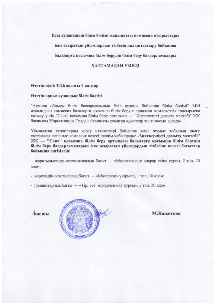 "Ақмола облысы Есіл ауданының білім беру бөлімі" мемлекеттік мекемесі