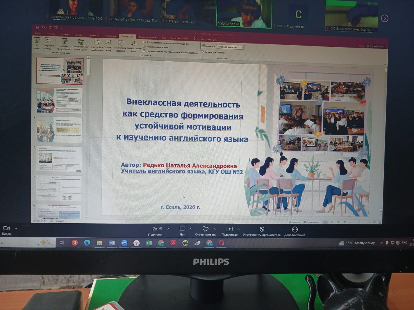 Вебинар барысында Есіл ауданының педагогтері өздерінің практикалық тәжірибесін, әдістемелік әзірлемелерін және оқыту мен тәрбиелеудің инновациялық тәсілдерін ұсынды: